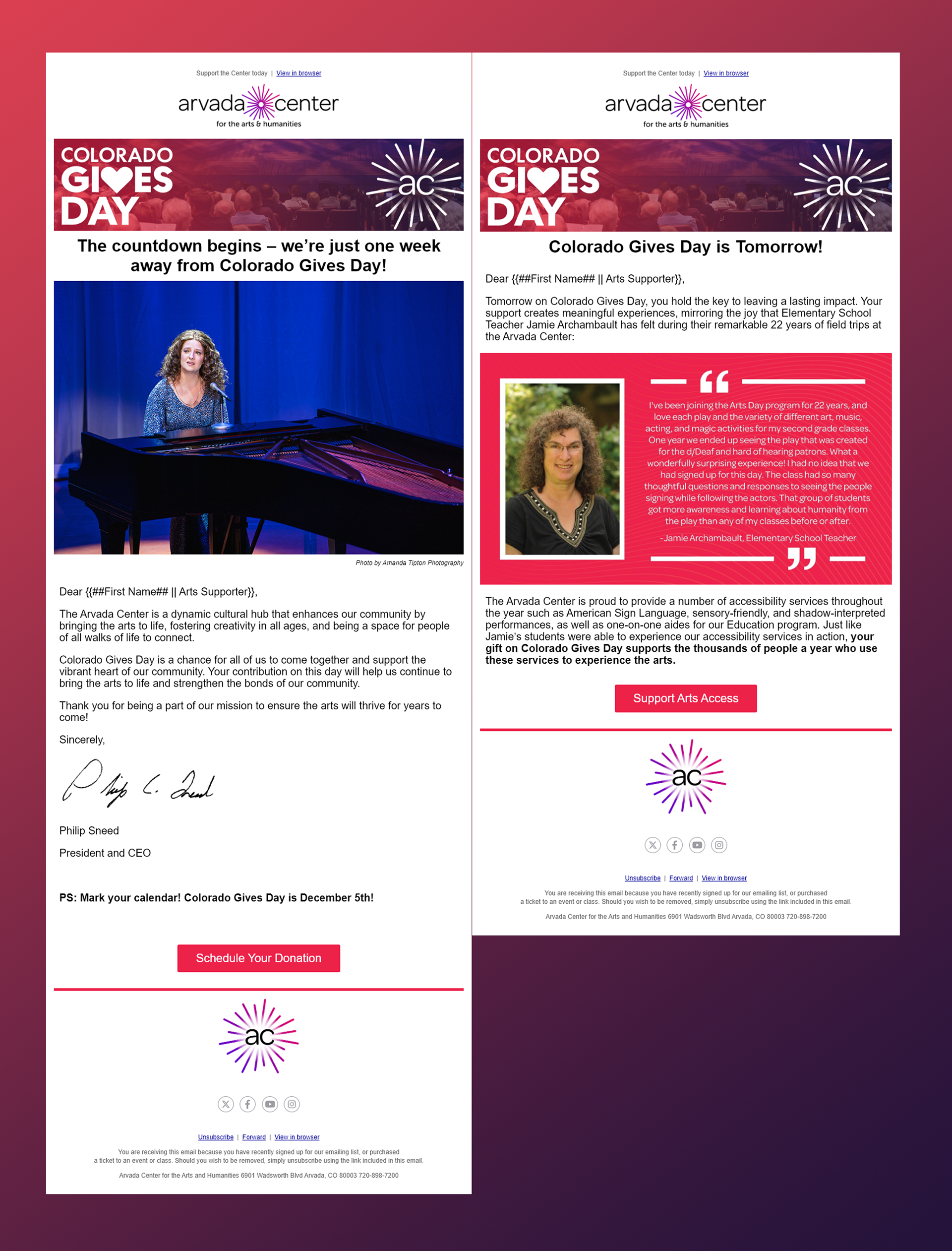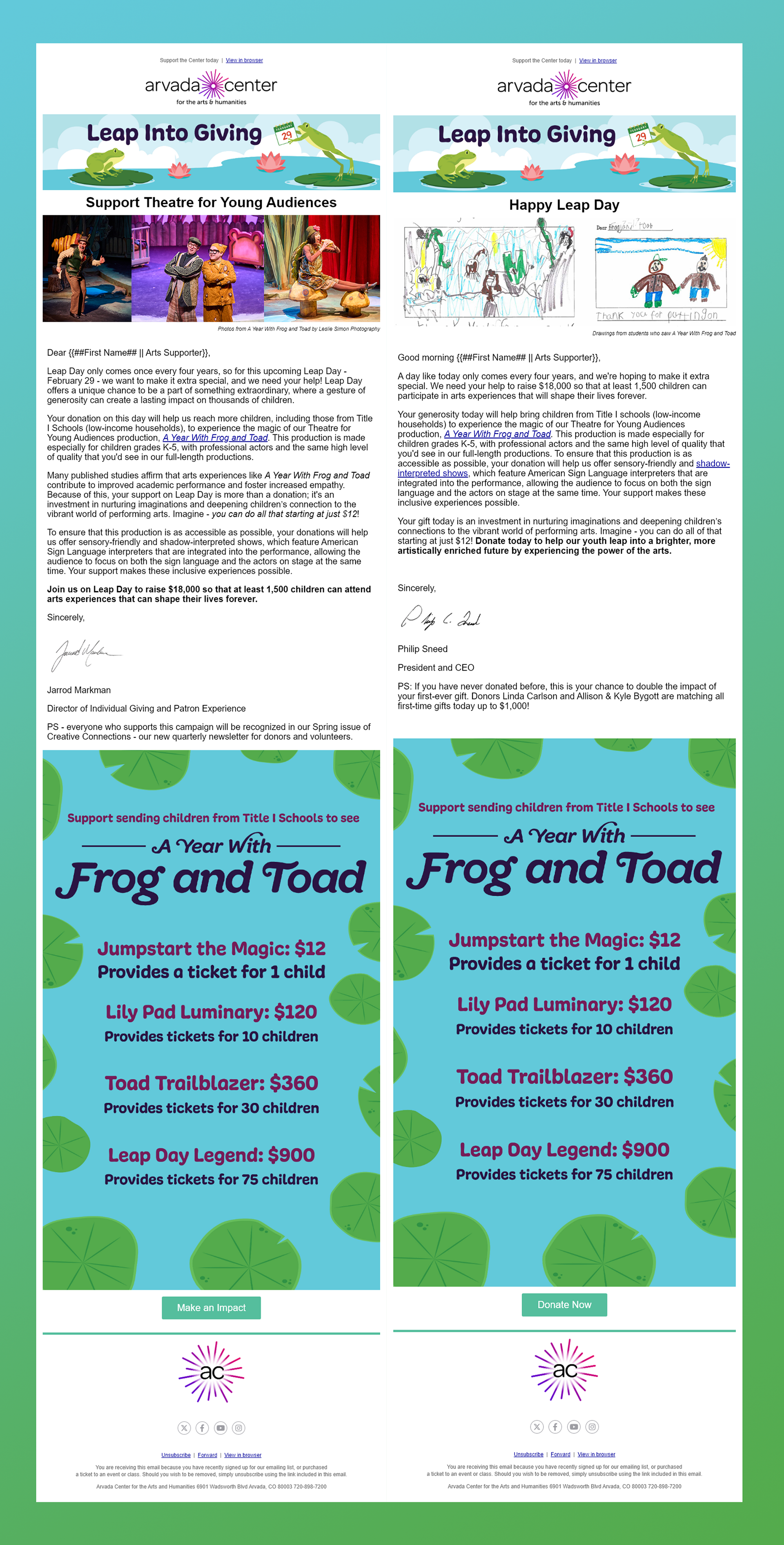Below you will find a couple of examples of email marketing campaigns I designed. Both of these projects were a segments of larger fundraising campaigns that reached 50k-75k readers.